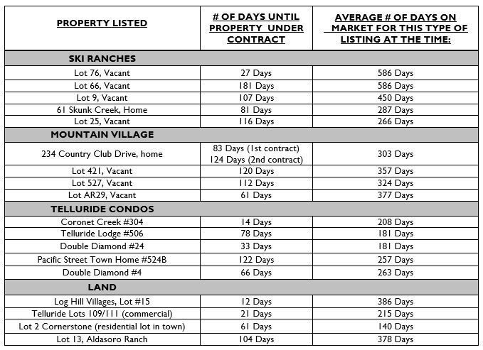 "A hearty thanks and well done to you and your associates for the thorough and professional job you all did in listing and selling our former house in Telluride."
